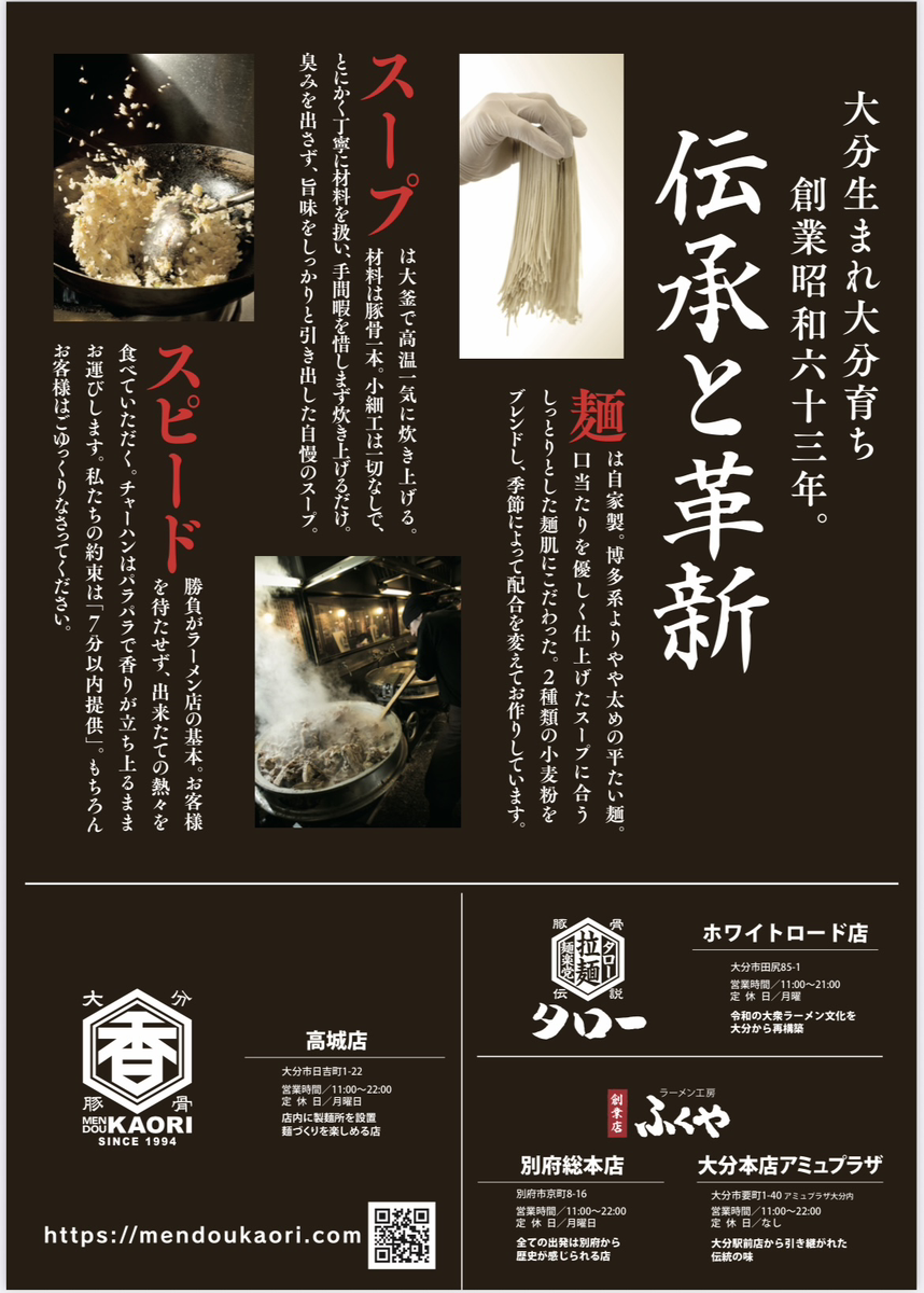 大分生まれ。大分育ち。親子三世代で楽しめる豚骨ラーメン専門店「麺堂香」